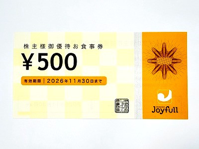ジョイフルの株主優待 500円券です!