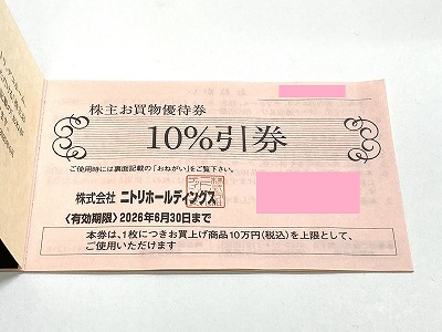 ニトリ株主お買物優待券(10%引券)