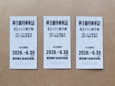 東京メトロ株主優待乗車証です。