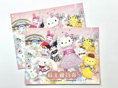 株式会社サンリオ(証券コード:8136)より毎年3月31日および9月30日時点での株主様へ保有株数に応じて謹呈される株主優待券の一つです。