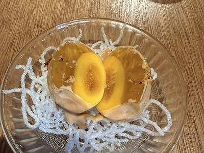 ピータンのウフマヨを注文したところ今なら”黄金ピータン”がありますよとのこと。”なにそれ!食べたことないんで食べてみたい~”とテンションMAX!普通のピータンより癖が少なく食べやすい感じで自家製マヨとの相性ばっちり。見た目もとても綺麗✨