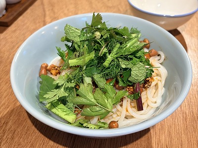 こちらは”麻辣あえビーフン”にパクチーなど香草を追加で♪
