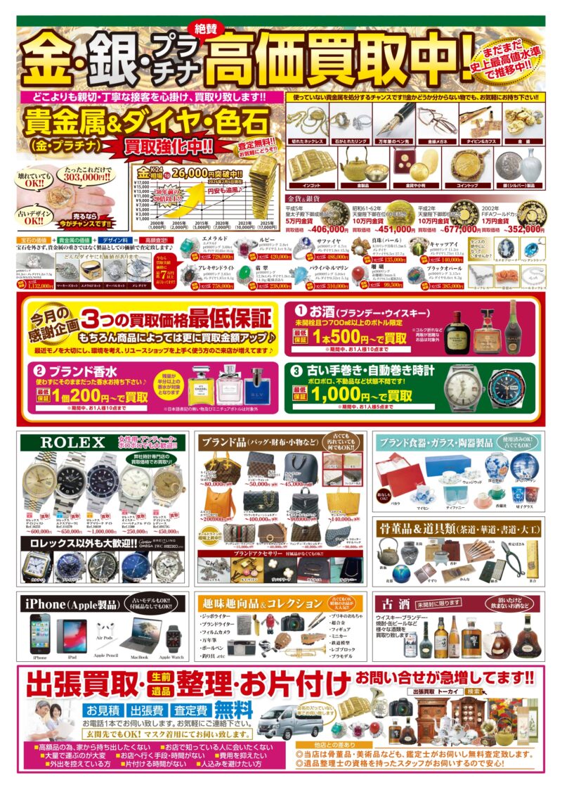 買取専門店トーカイでは金・プラチナ、ジュエリー、記念金貨、